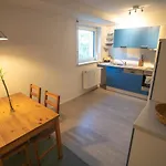 The apartment features a fully equipped kitchen with an electric kettle, a fridge, and an oven. Also, guests can use hiking, horse riding, and bowling to stay active.